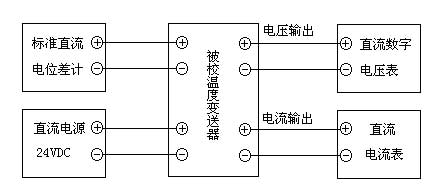 5.1.2按圖2正確接線(圖2為同時具有電壓和電流輸出的溫度變送器的接線,校準時可根據儀表的實際輸出情況而定),儀表通電預熱5分鐘;
